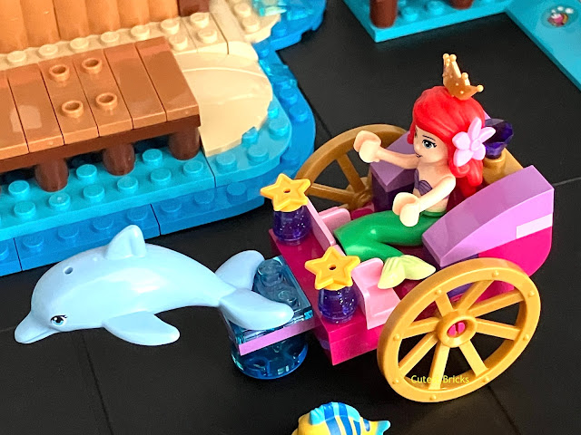 Das Set besteht aus zwei Teilen. Dem kleinen Zuhause von Arielle und einer Kutsche. Die enthaltenen Figuren sind Arielle, ein großer Delfin und Fabius der Fisch. Die kleine gelbe Flunder.